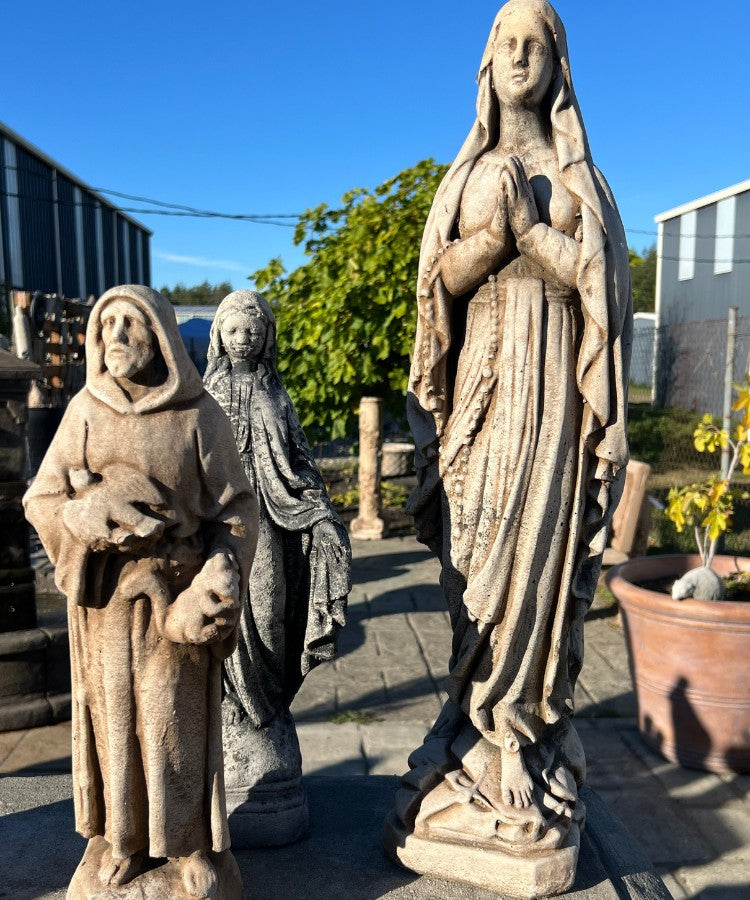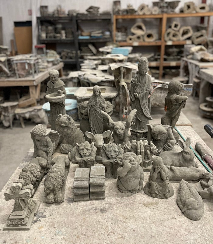 Every statue we create starts here, hand-poured, hand finished and crafted one at a time by skilled artisans. We use a premium concrete blend that’s built to endure every season, so your piece lasts for decades. From raw molds to detailed staining, every step reflects our commitment to quality. This is real craftsmanship you can trust, never mass-produced, never cut corners.